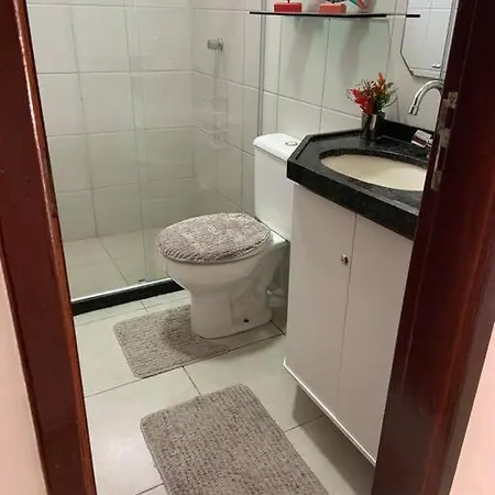 A Chale Com Excelente Area De Lazer E Bem Localizado Villa magába foglal egy fürdőszobát külön WC-vel és zuhanyzóval. Hajszárító is biztosított az ön kényelméért.