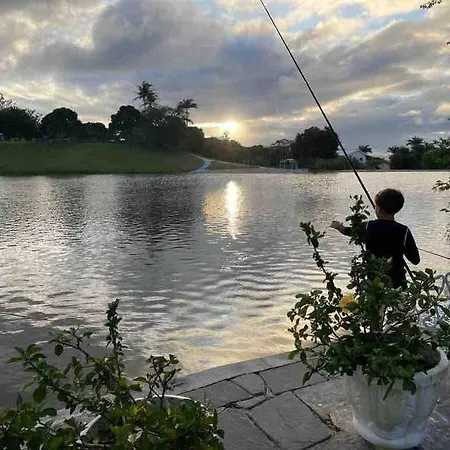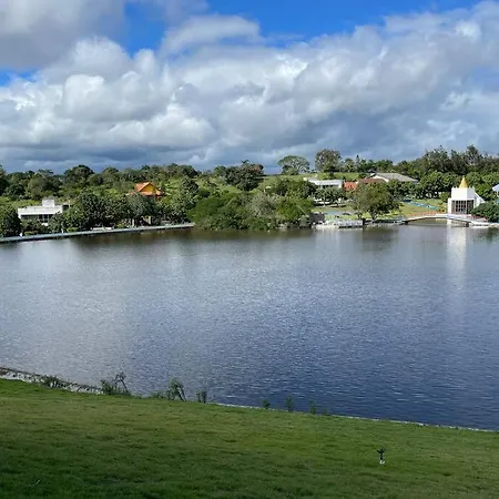 A 2 hálószobás Chale Com Excelente Area De Lazer E Bem Localizado Villa Gravatá tóra néző teraszt, valamint magán úszómedencét biztosít.